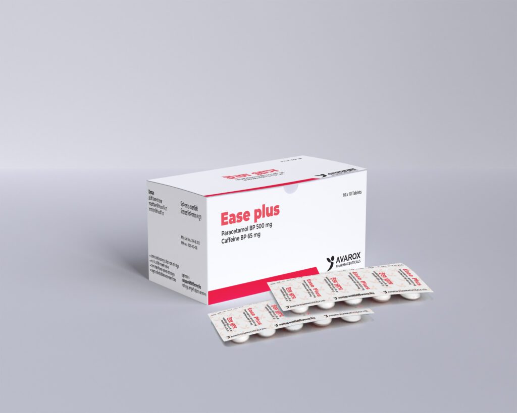 Ease Plus 500 is a combination medication containing Paracetamol (500 mg) and Caffeine (65 mg). It is designed to provide effective pain relief with enhanced efficacy due to the stimulating effects of caffeine. Paracetamol is a widely used analgesic (pain reliever) and antipyretic (fever reducer), while caffeine acts as a central nervous system stimulant that enhances the analgesic effects of paracetamol.